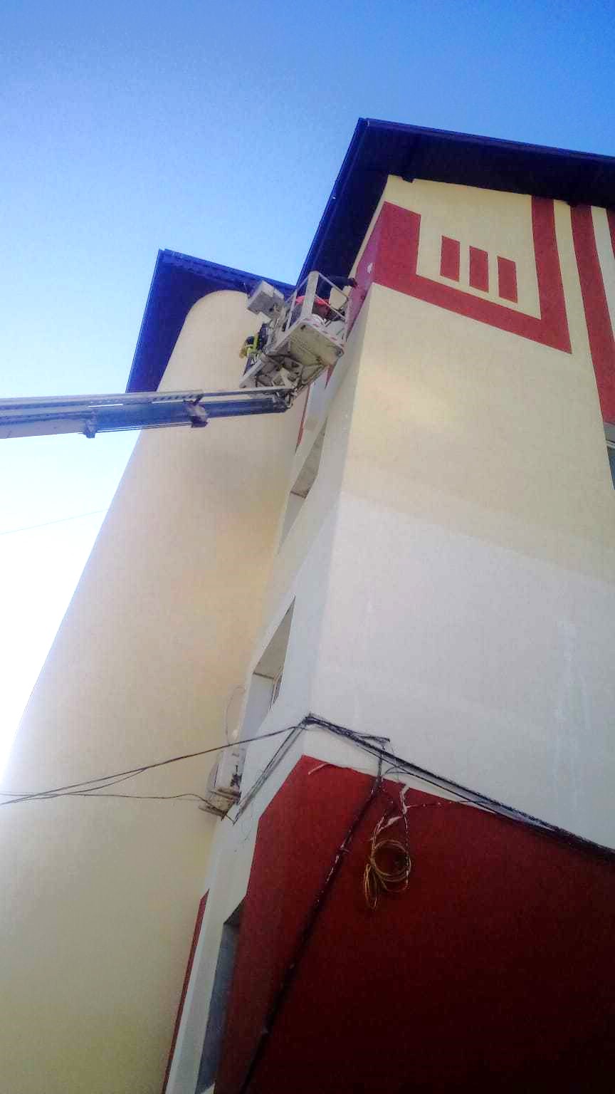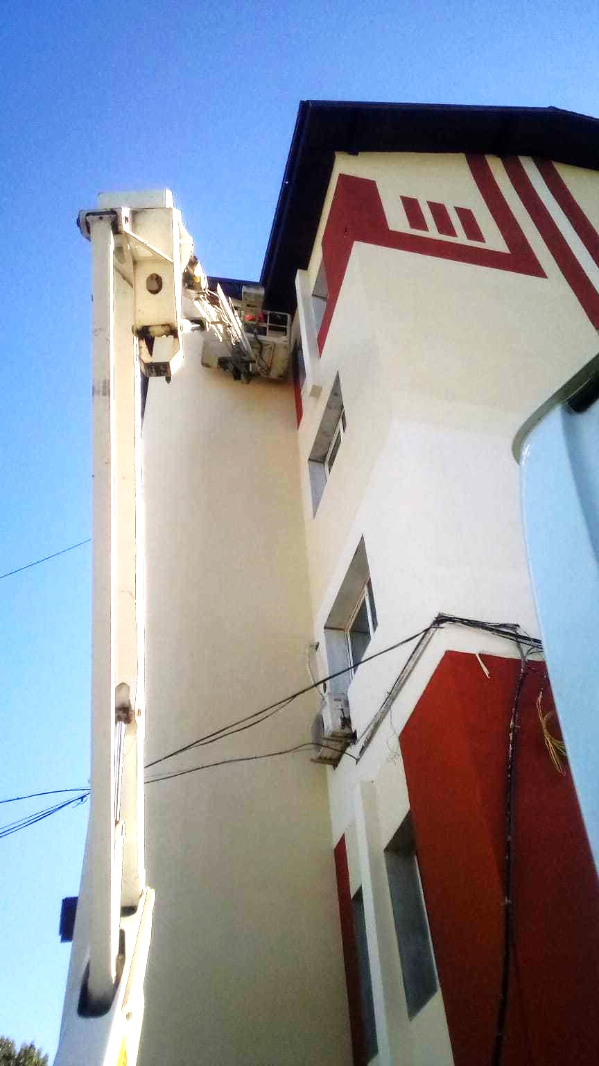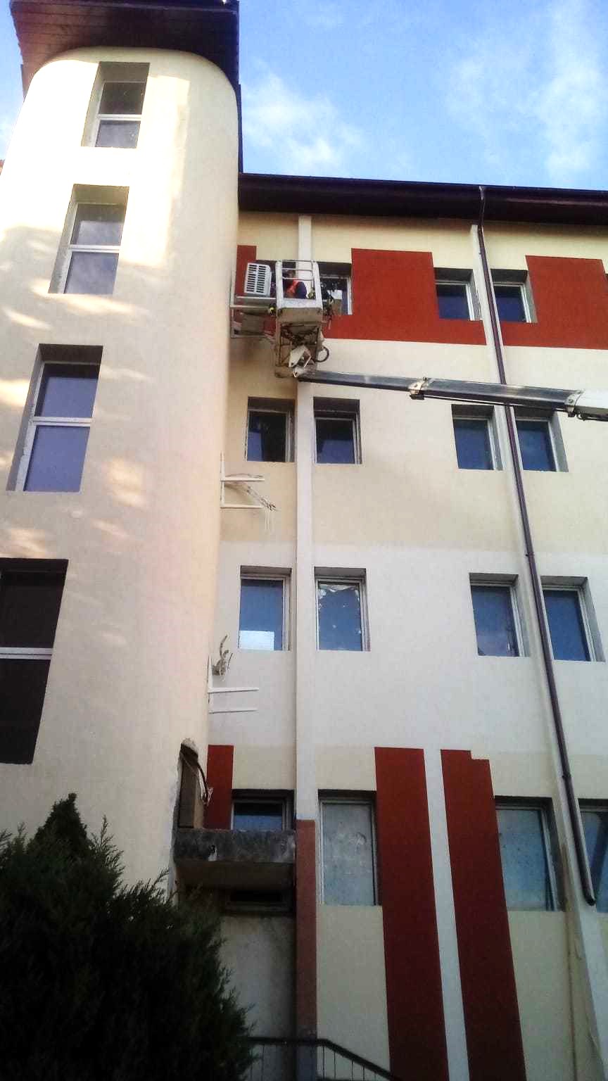 The following week, our client reached out to us once again for our aerial platform services, this time for maintenance work and A/C unit installation at a hotel located in the Mamaia Resort. The task at hand required the replacement of several A/C units at a height of 21 meters and the painting of the hotel's exterior walls. Our truck-mounted boom lift was the ideal choice for these tasks, as it is able to lift both workers and tools to the necessary height and ensures a faster completion time for the required tasks. The teams collaborated seamlessly, resulting in the successful completion of the task in a matter of hours.