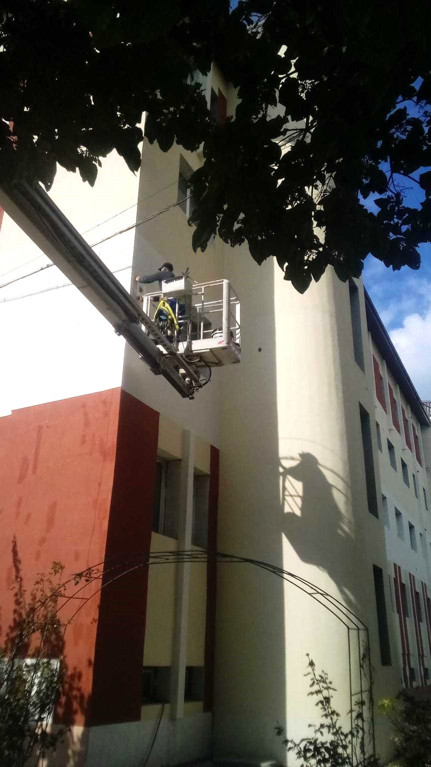 Kran recently had the pleasure of providing aerial platform rental services to a local client for both banner mounting and hotel maintenance works. The client required a reliable and efficient means of reaching heights to complete the necessary tasks at hand.