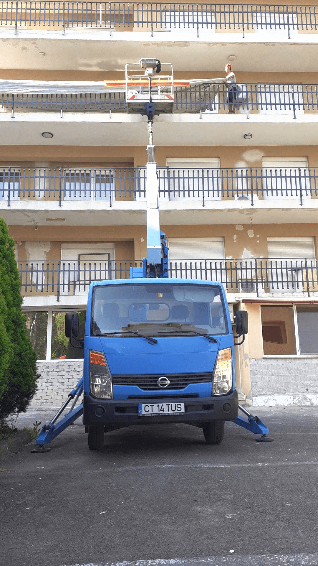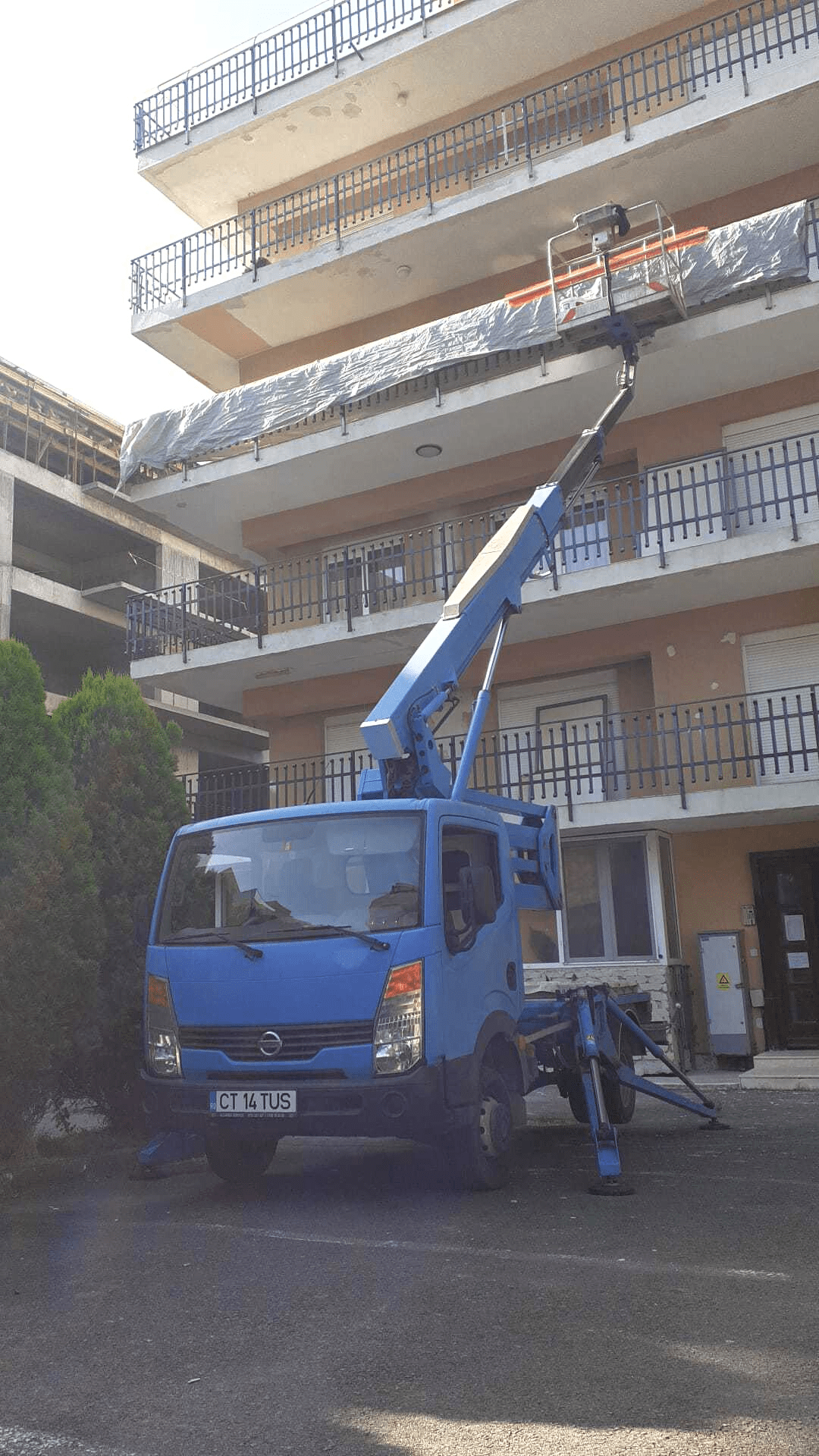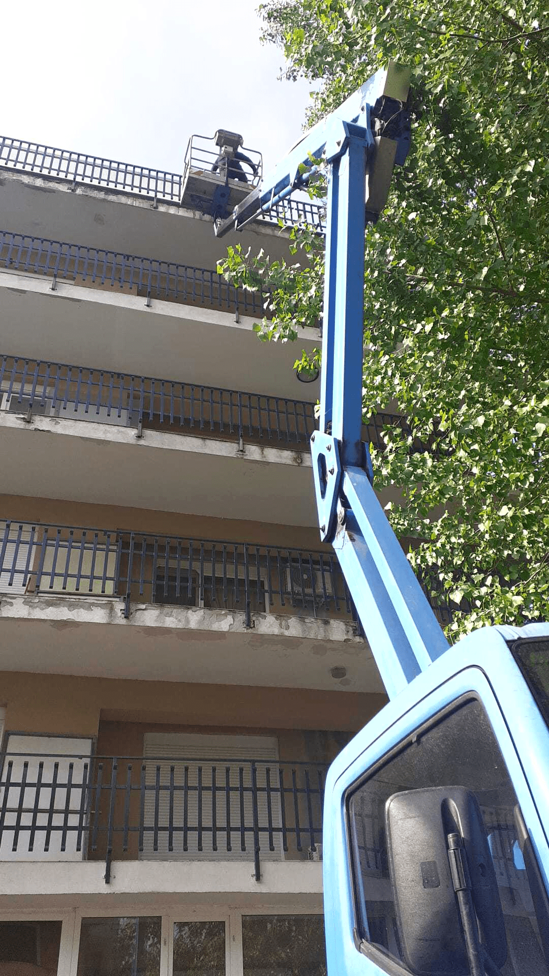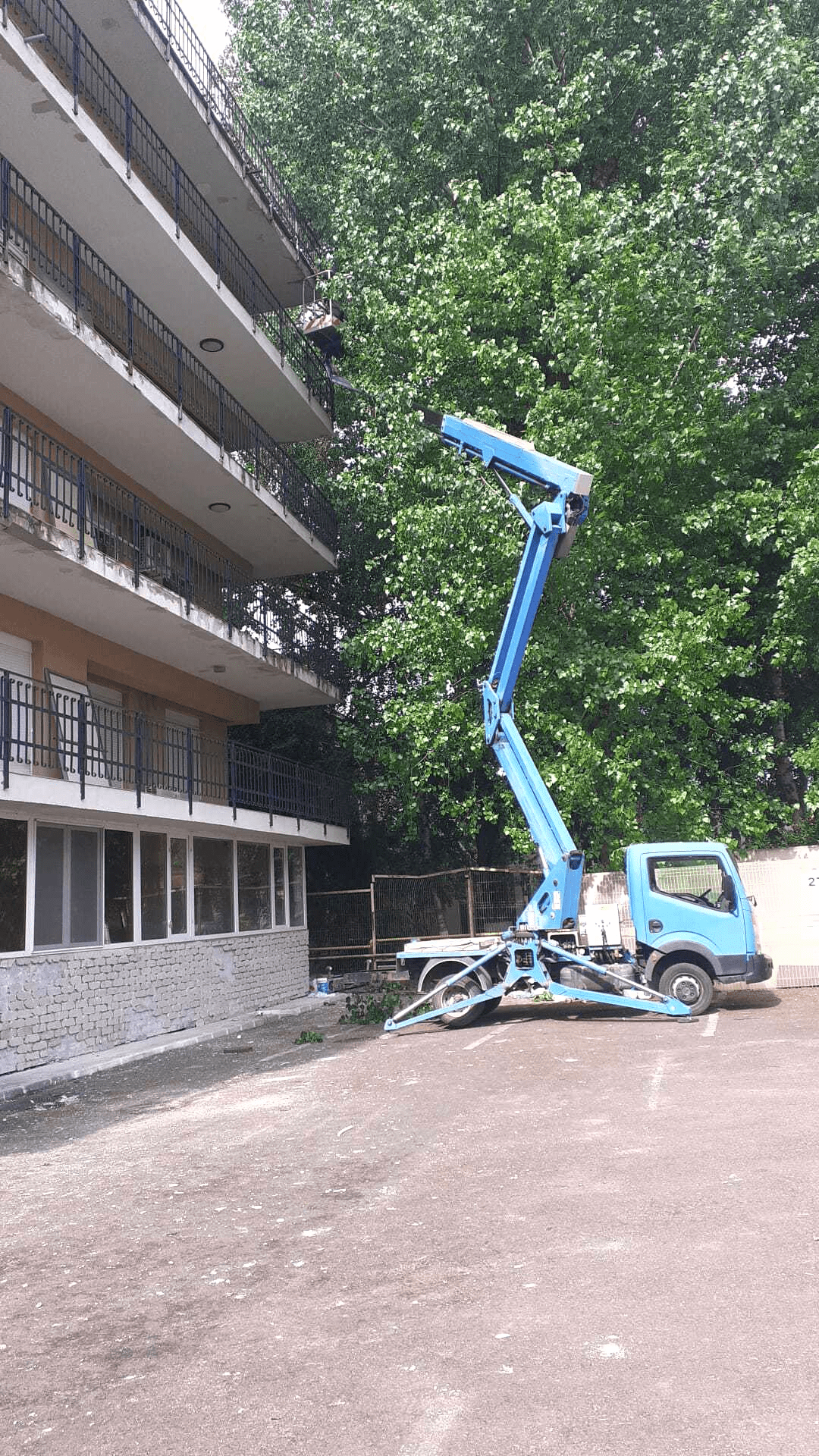 Kran helped a local client with the balcony maintenance work by providing him with our truck-mounted boom lift rental services in May and June.