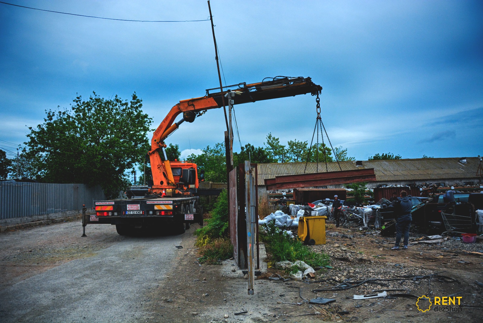 We were recently contacted with a crane rental application by Dezshop from Agigea to handle some large metal profiles and transport them using a platform and a forklift to a growing second-hand car shop.
