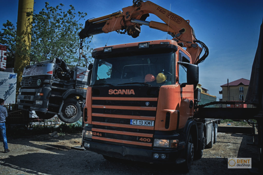 When I say our team, I mean Vali - driver and crane operator, Bogdan - filming and editing. And, obviously, an integral part of the team is our Scania tractor head and the Fassi crane.