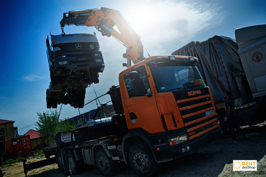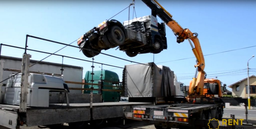 Our team went to Valu lui Traian to load a tractor head, of approximately 7.5 tons, on a semi-trailer.