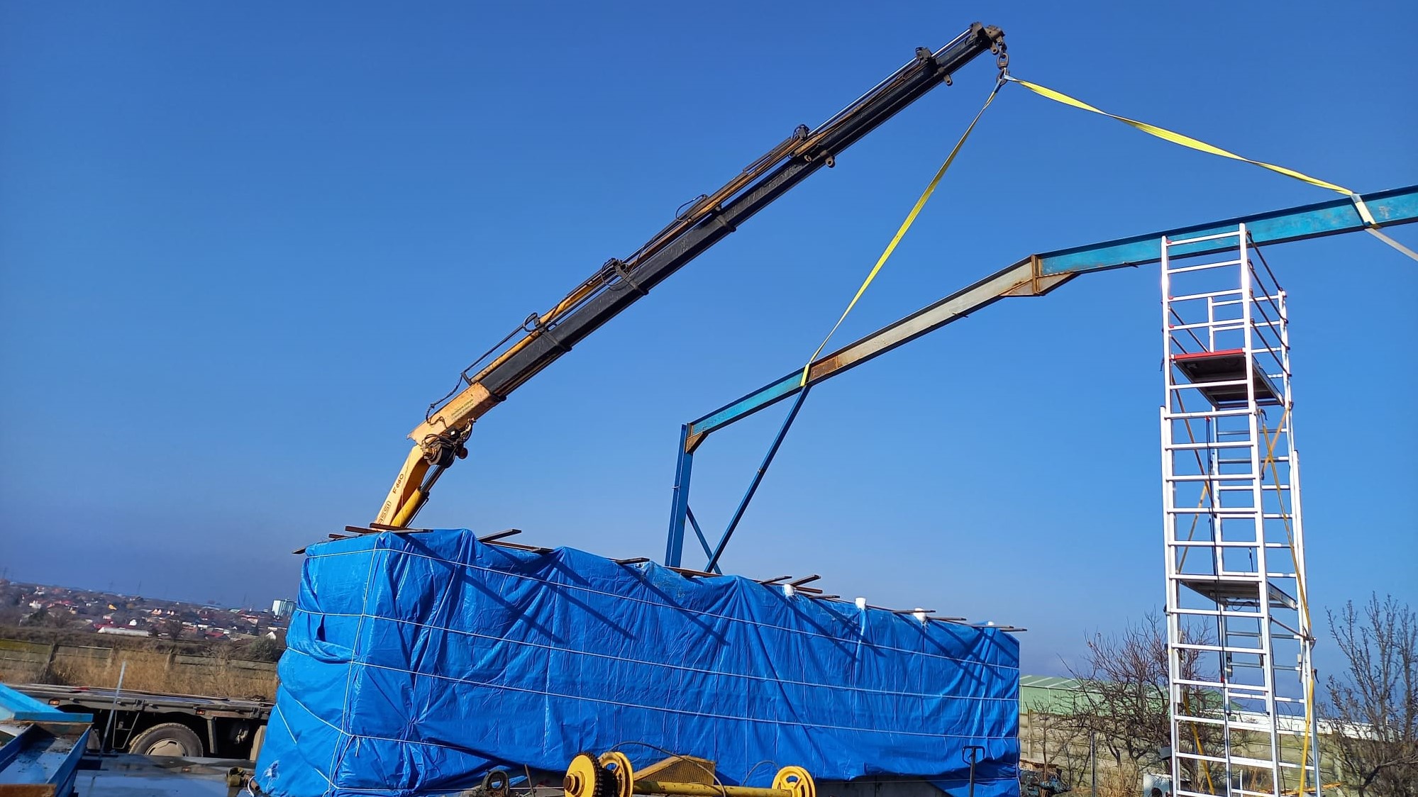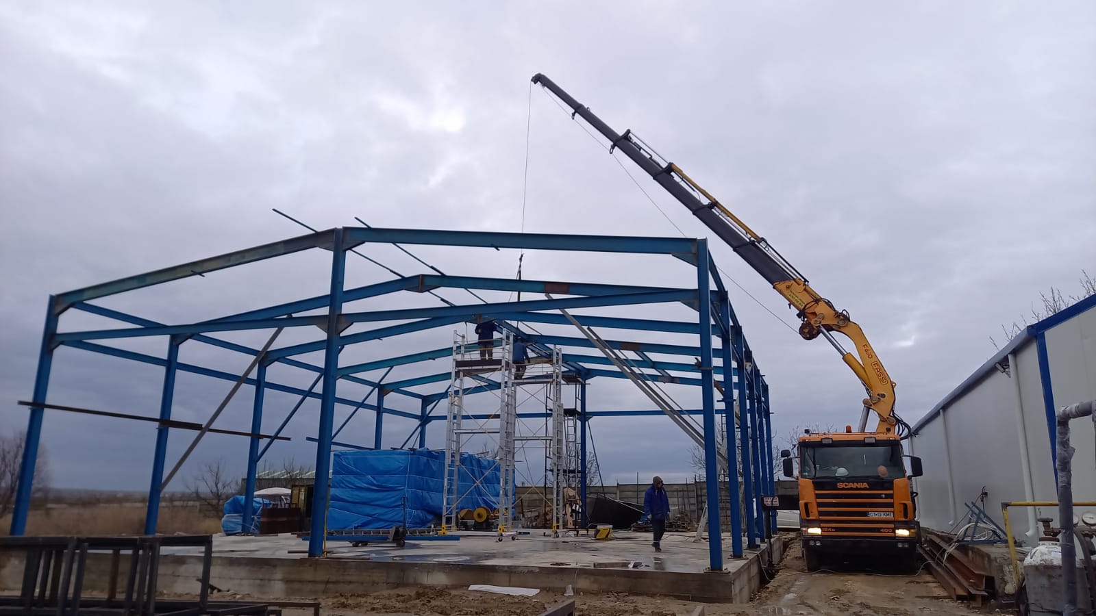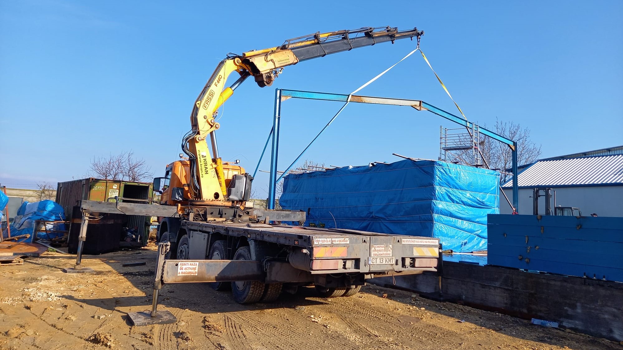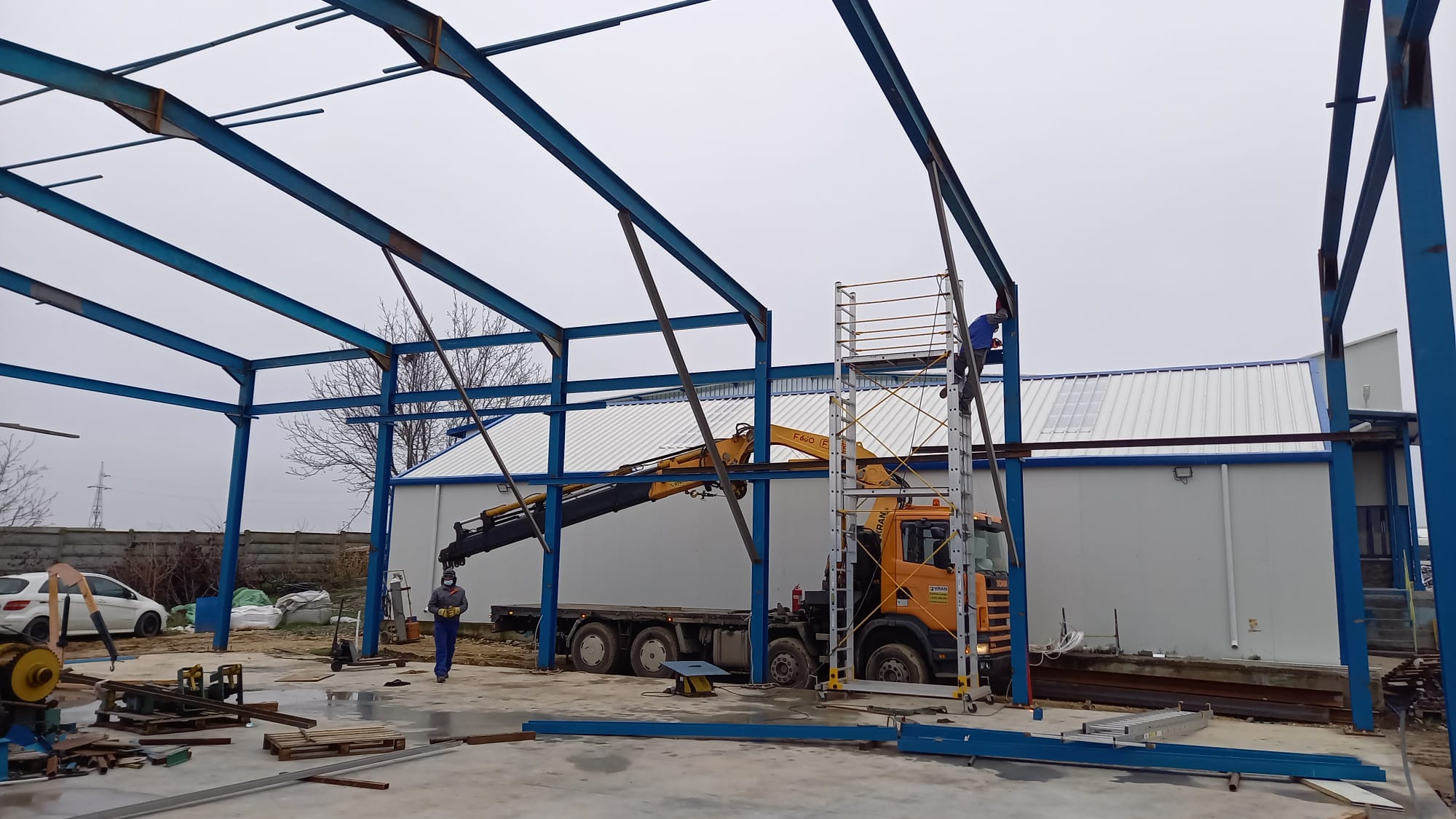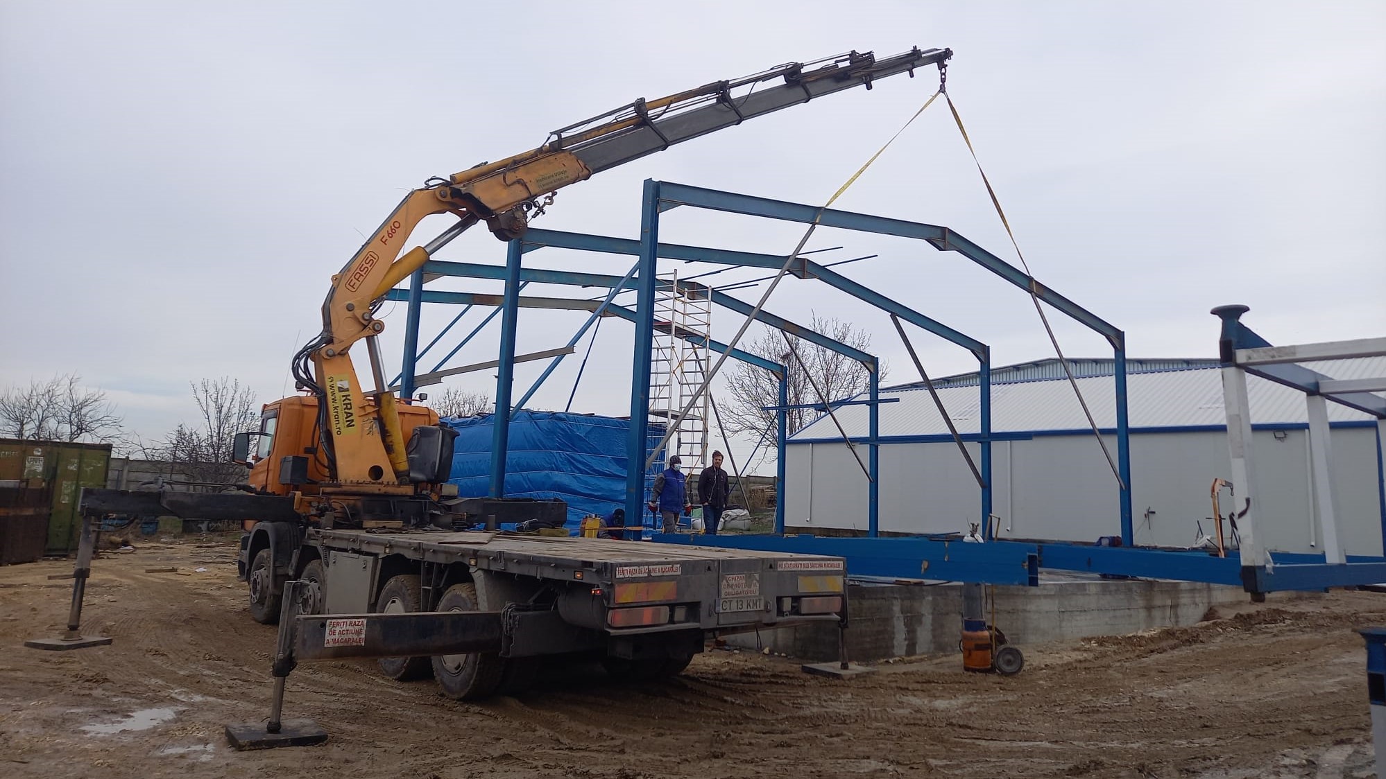 Another successful project finished by the Kran team! Our client was very pleased with our equipment rental services. We were able to provide them with a crane truck in Lumina, Constanta for the erection of metal frames for the construction of a warehouse in December. This was a successful job that went smoothly thanks to our equipment and experienced operators.