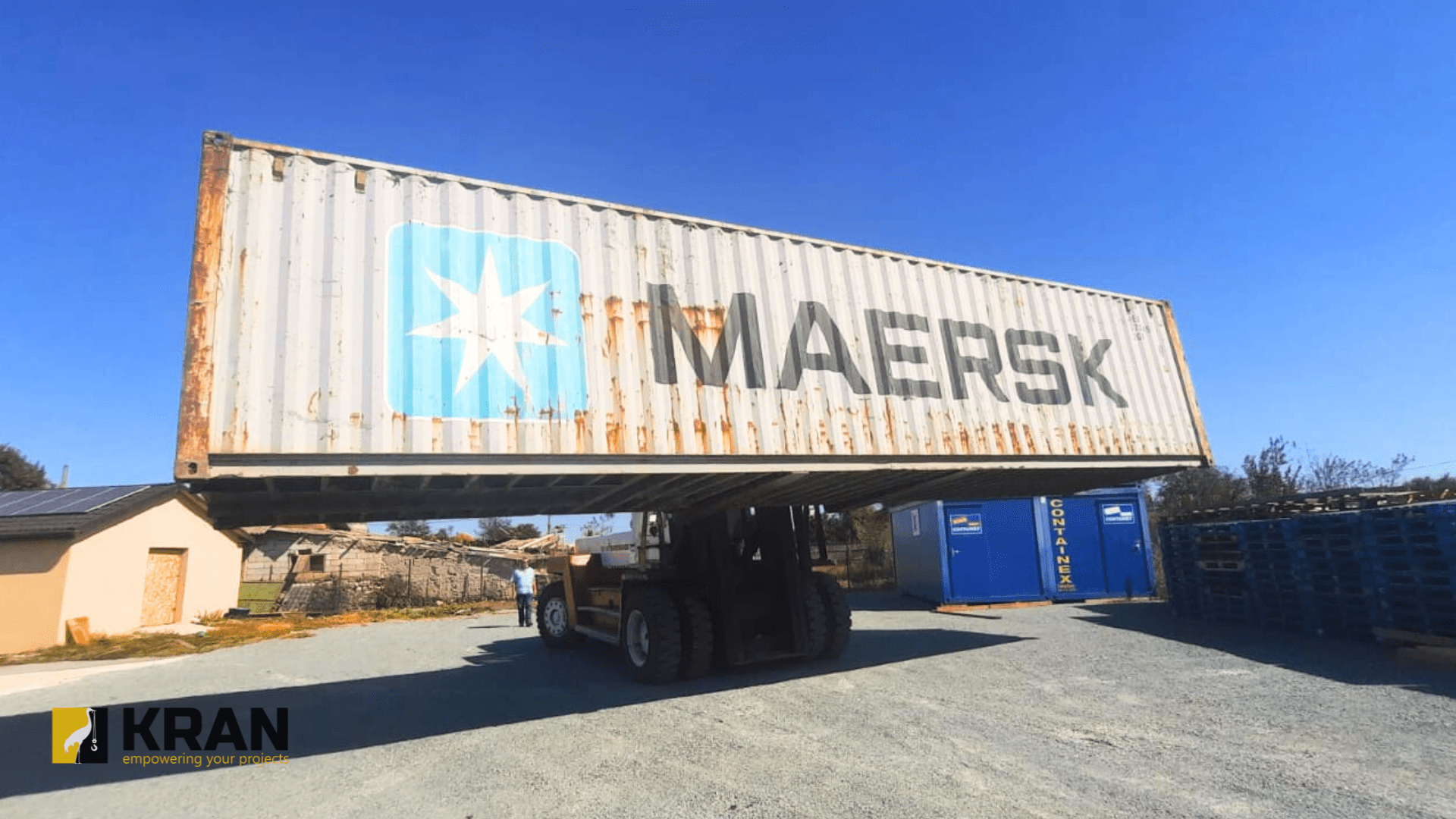 A logistics company contacted Kran, requesting assistance in lifting heavy shipping containers in their area. The request was to relocate the containers to another location in their yard. They do not have the proper equipment to do so. With that, Kran accepted their request and responded to their location. Of course, along with our heavy forklift rental, we are capable of lifting up to 27 tons of load.