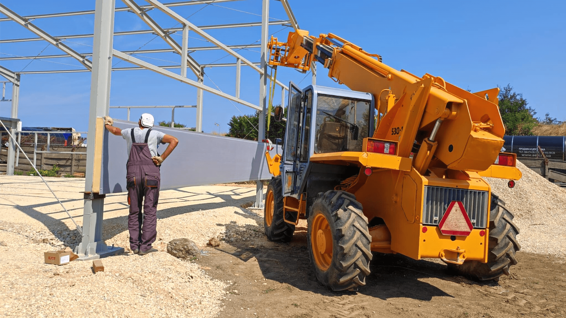 Kran equipment rental service was requested by a client to assist them in the installation of metal structures using a telehandler hire in July.