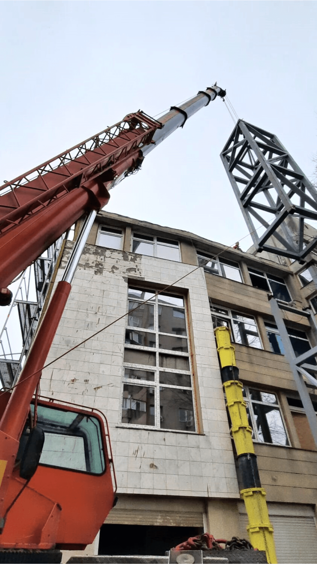 The location of the job site was in Constanta and consisted of the installation of the metallic structures for an elevator on the exterior of an office building in construction.