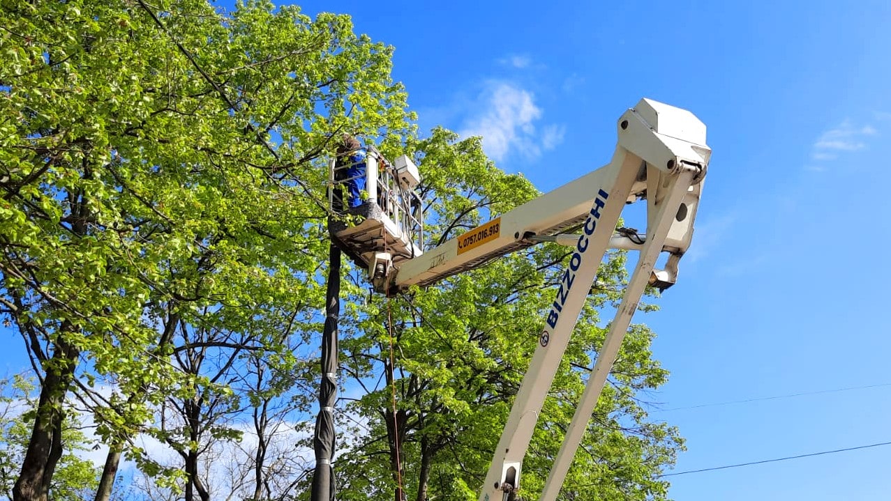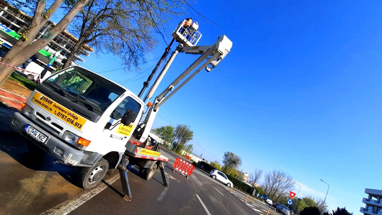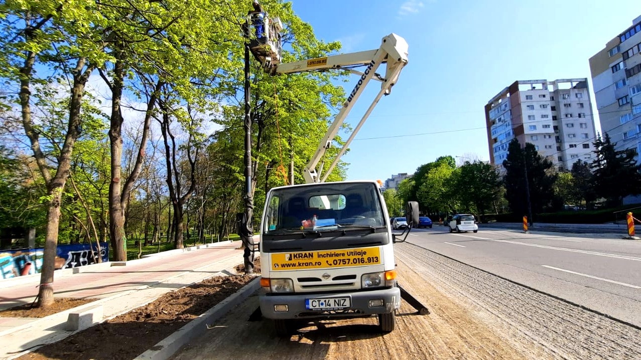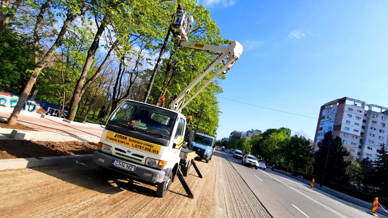 In April, Kran assisted in the light pole installation operation of A. Lapusneanu Avenue, using its aerial working platform for rent.