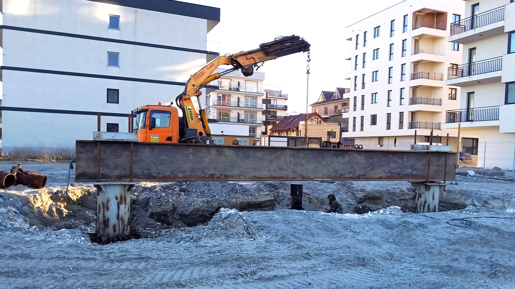 In March, Kran offered the mobile crane rental services for foundation pillars strength test to a local construction company in Mamaia Nord, Constanta.