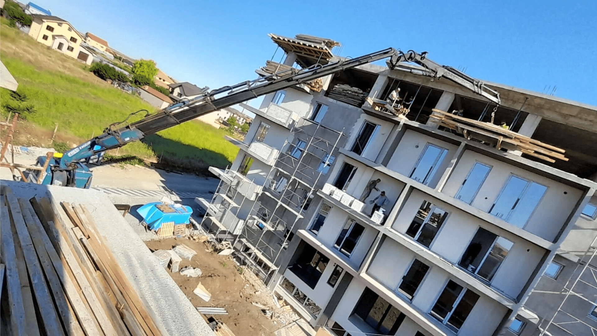 Kran was recently called upon to assist a local client in Techirghiol Town, Constanta with relocating construction materials for a building in progress. The client needed to move the materials from the fourth floor to the second floor and required Kran's mobile crane rental services to get the job done.