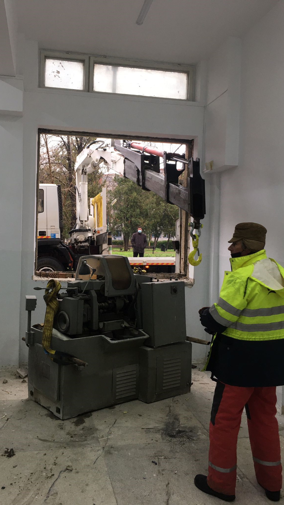 Kran was recently contacted by a client to provide rental services for a mobile crane truck and forklift in order to complete a project at the Ovidius University in Constanta, Romania. The project consisted of removing a 1-tonne lathe from the building. The lathe was inside a room and because of the narrowness of the door, it had to be removed through the window, which was quite challenging. Kran team maneuvered the equipment successfully and finished the project in a short time despite the difficulty.