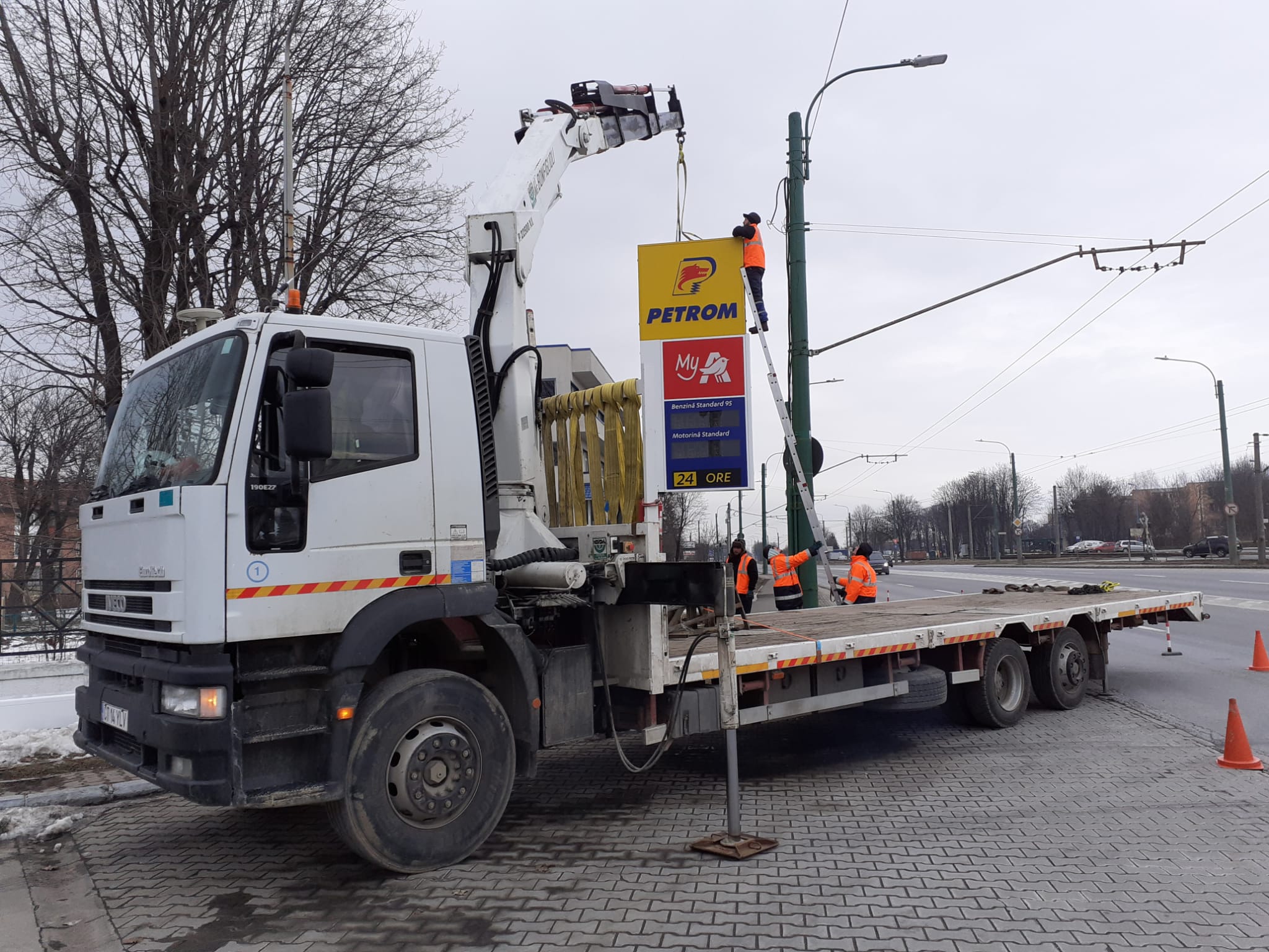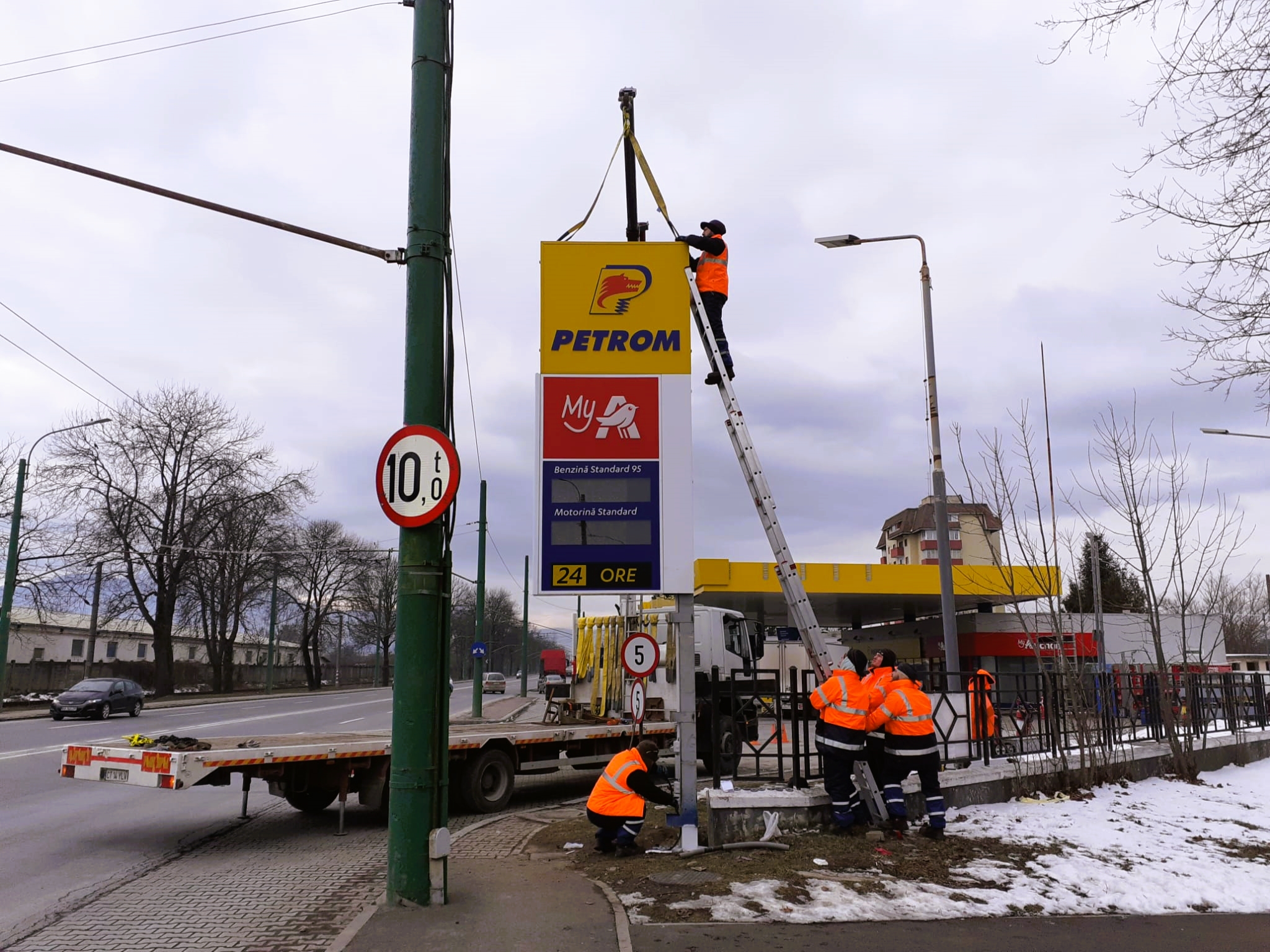 The two petrol station advertising totems had to be transported over 396 km away from Constanta and into Brasov City - an entirely different county! The totems had to be transported and also installed at the destination location.