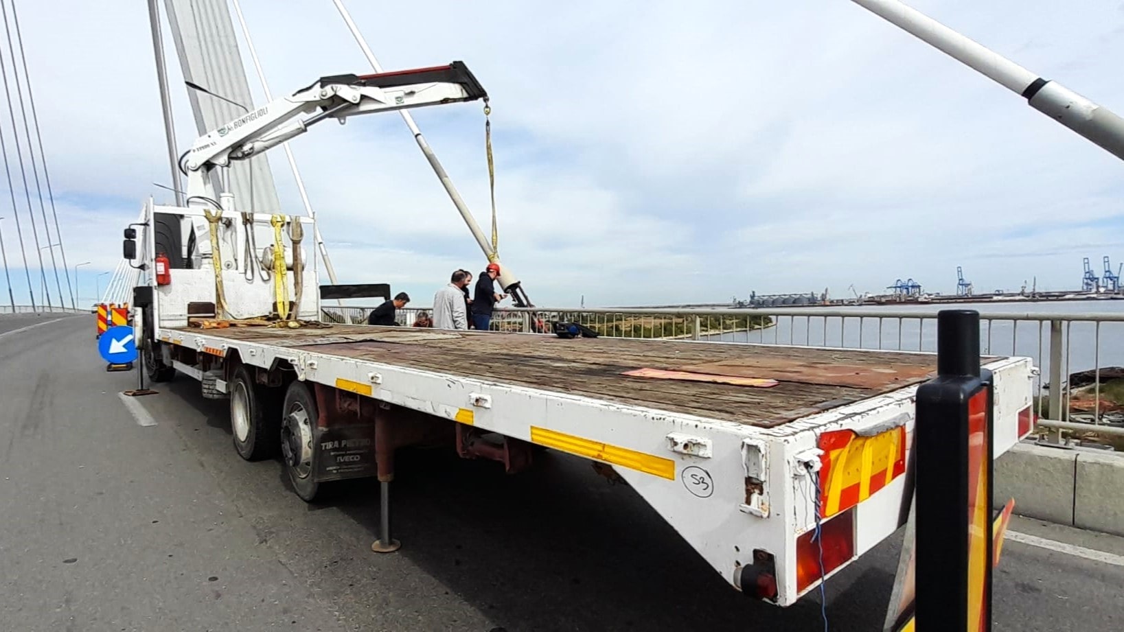 In October 2022, a client requested our truck crane to assist in the installation of a traffic management sensor on the Agigea Bridge.