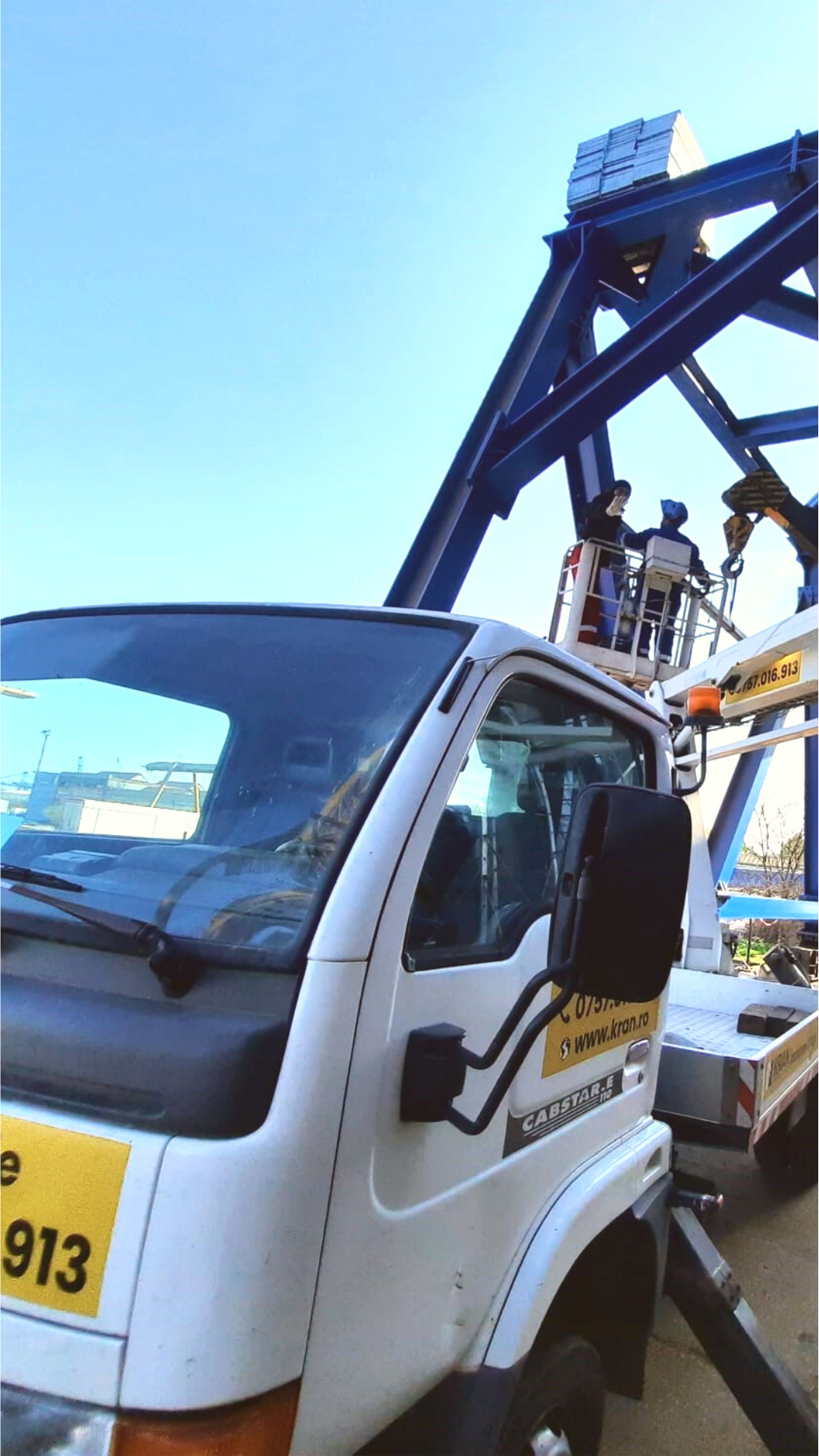 Unul din proiectele pentru care a avut nevoie de nacela PRB a fost pentru instalarea structurii pentru o cabină din PVC, lucrare care a avut loc la înălțimea de 15m.