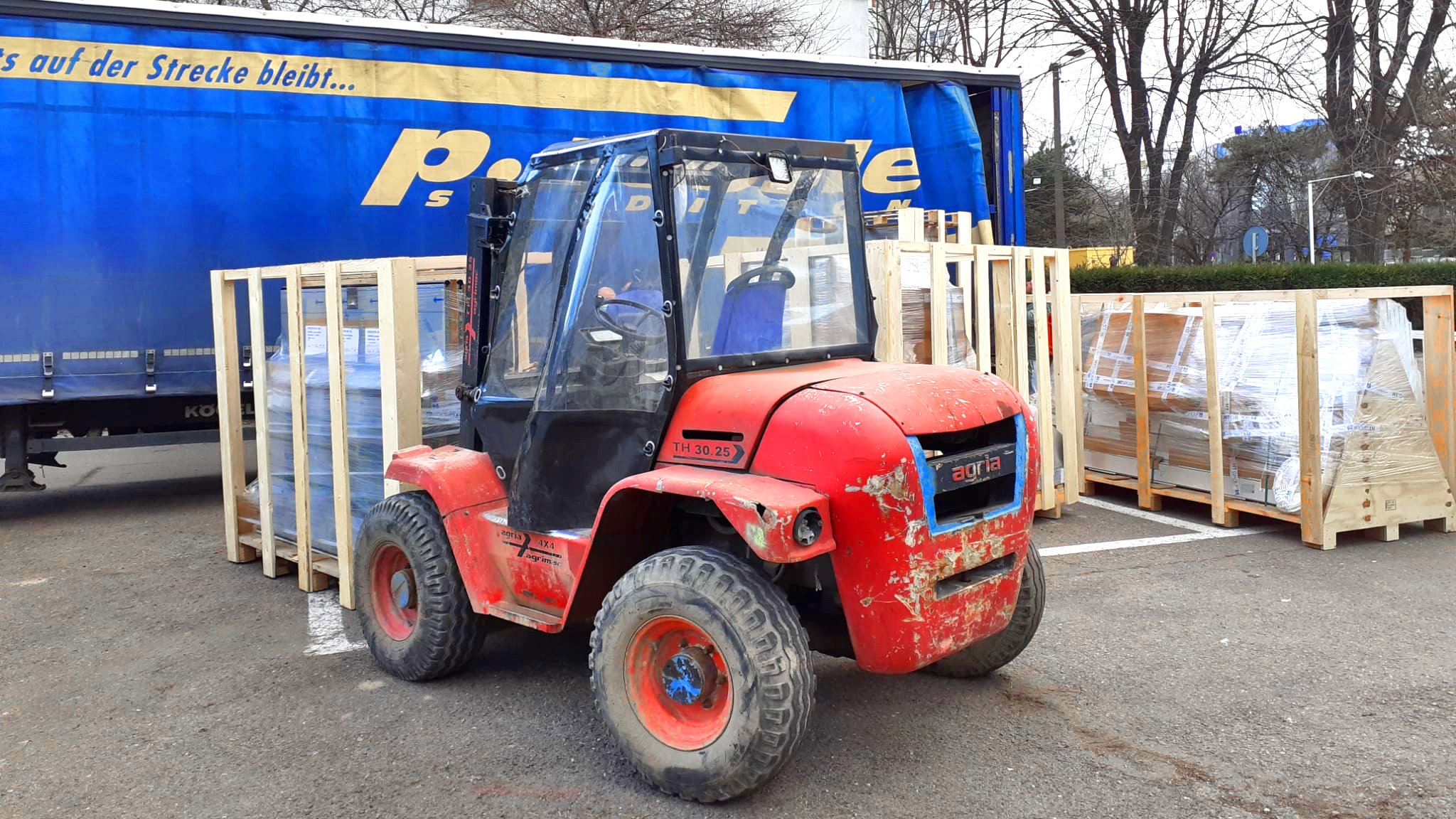 Doi dintre paleți aveau o lungime de 3m și cântăreau aproximativ 2t, fiecare, dar acest lucru nu a fost o problemă pentru operatorul nostru experimentat.