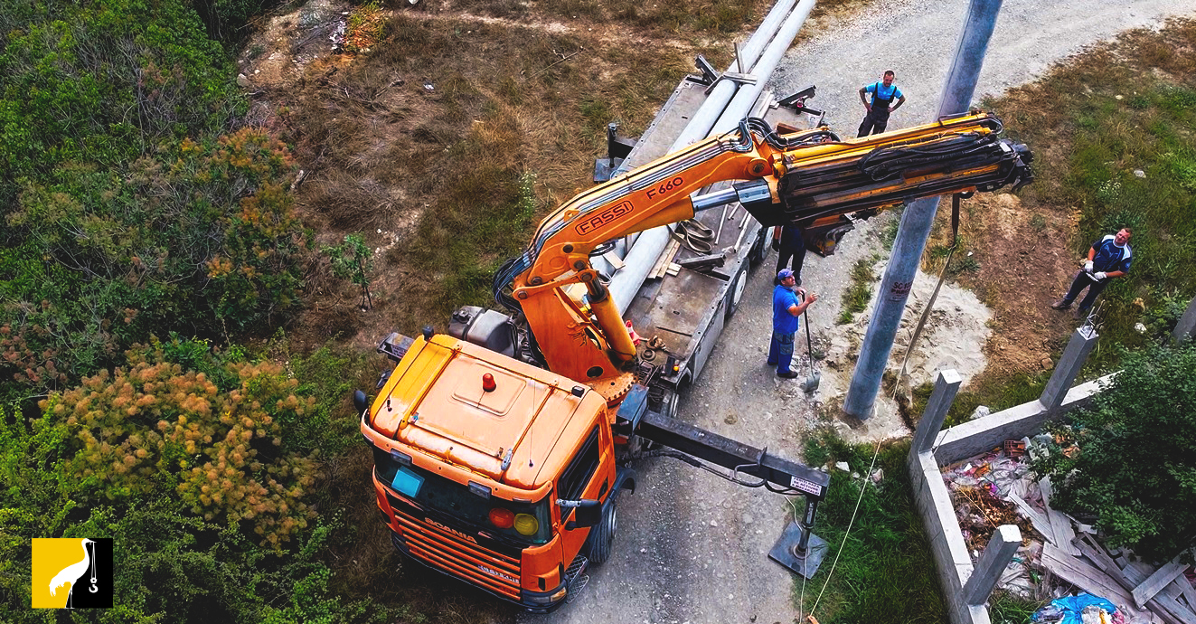 Când a fost necesară montarea stâlpilor pentru iluminat, Primăria Agigea ne-a solicitat serviciile de închiriere automacara. Automacaraua noastră Scania dispune de o platformă lungă de 6,2 metri potrivită pentru a transporta stâlpii. De asemenea, brațul macaralei Fassi se desfășoară la o lungime de 24 metri pentru a servi cu ușurință la montarea lor.
