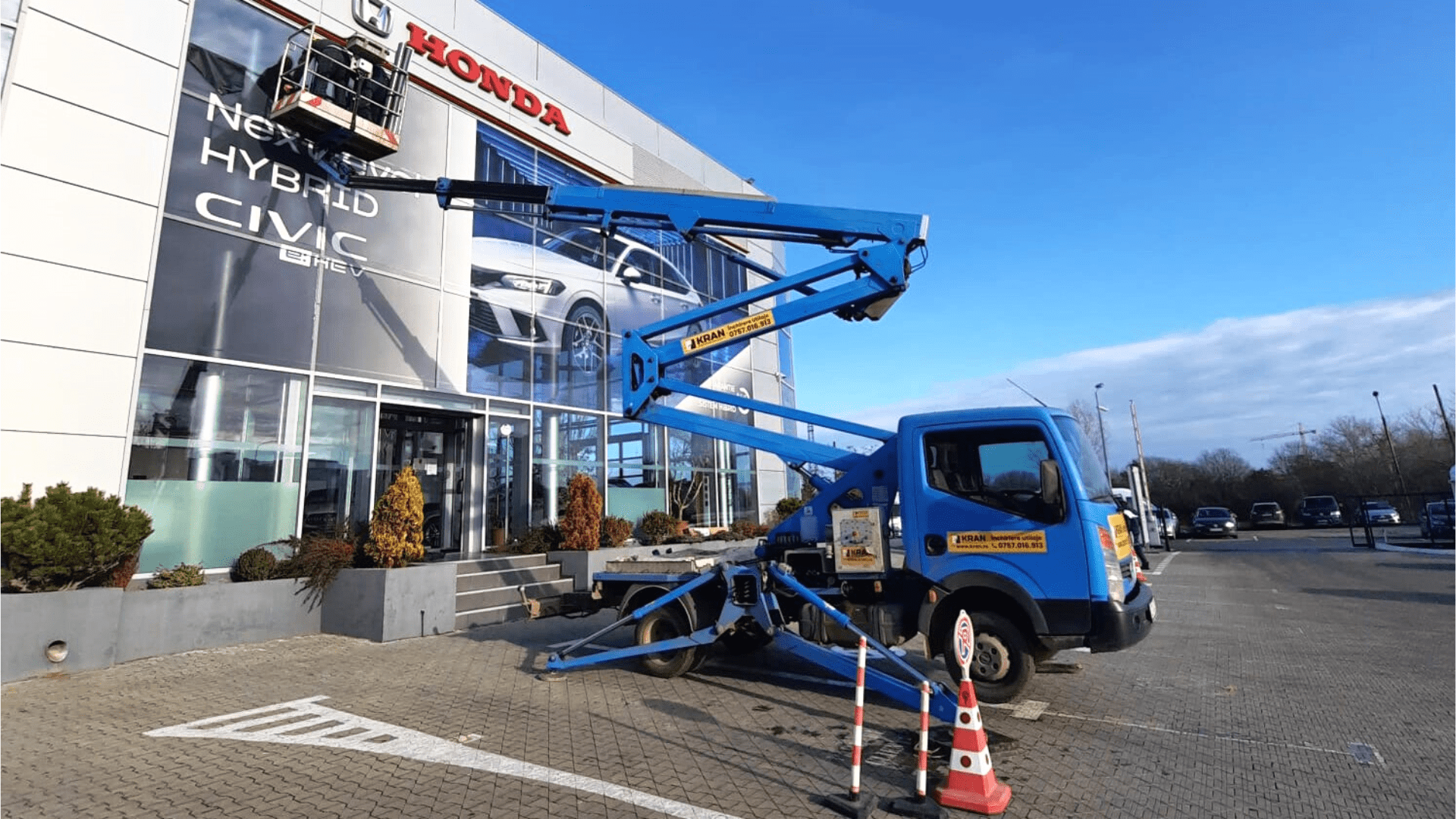 Kran a primit recent o solicitare din partea unui client de la un dealer auto pentru înlocuirea afișajului publicitar din clădirea sa.
