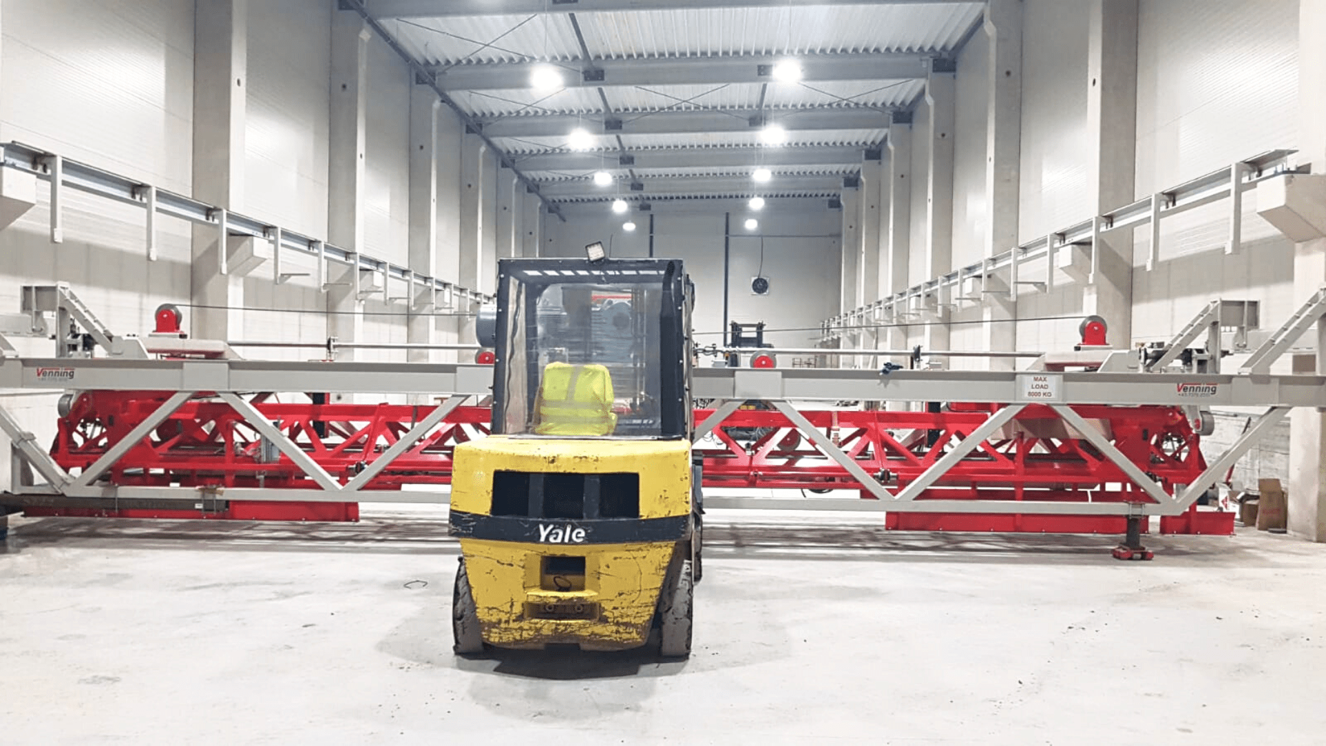 Un client din Ovidiu, Constanța a solicitat serviciul de închiriere stivuitoare Kran în Ianuarie pentru a-l ajuta la instalarea podului rulant pe șine.