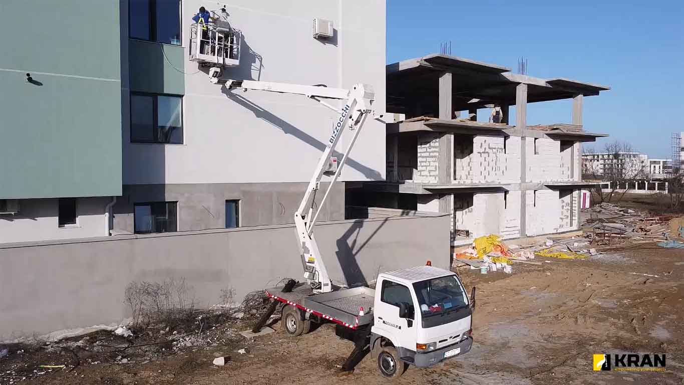 The Kran lift rental and work platform service at height in Constanța allows for the rapid advancement of works. We offer clients lift rental and work platform services at height ideal for repairs, maintenance, construction, cargo handling and other commercial or industrial activities.